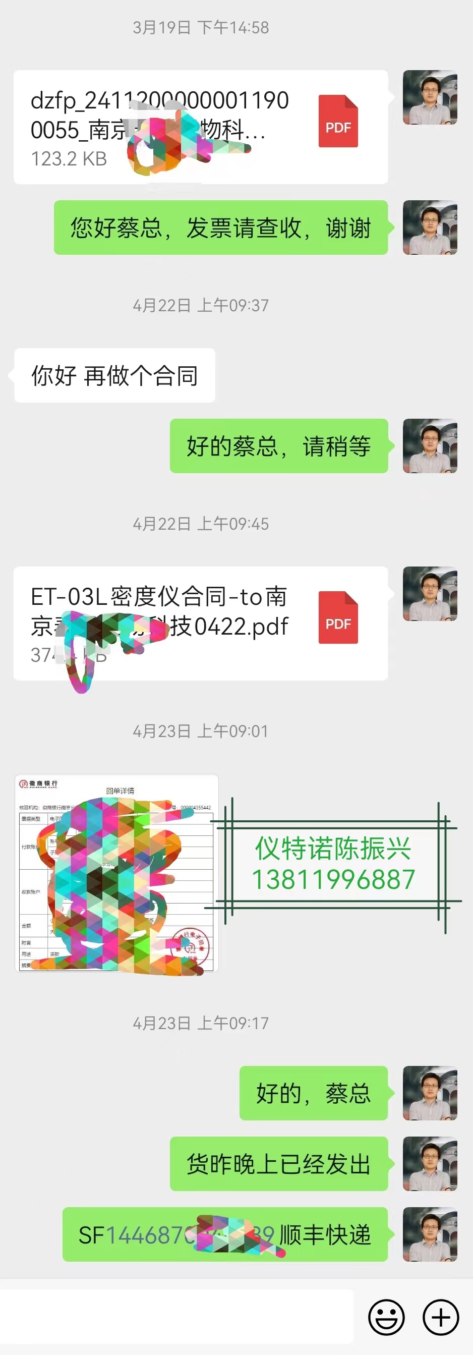 這位液體密度計ET-03L的儀器商老客戶,3月份下單了一臺,4月聯系直接就讓做合同,一句多余的話也沒有,這信任感是滿滿的啊!