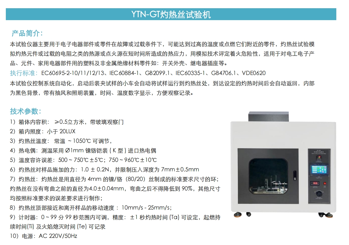 灼熱絲試驗機通過暗火測試材料燃燒性能,溫度范圍可達1050℃。