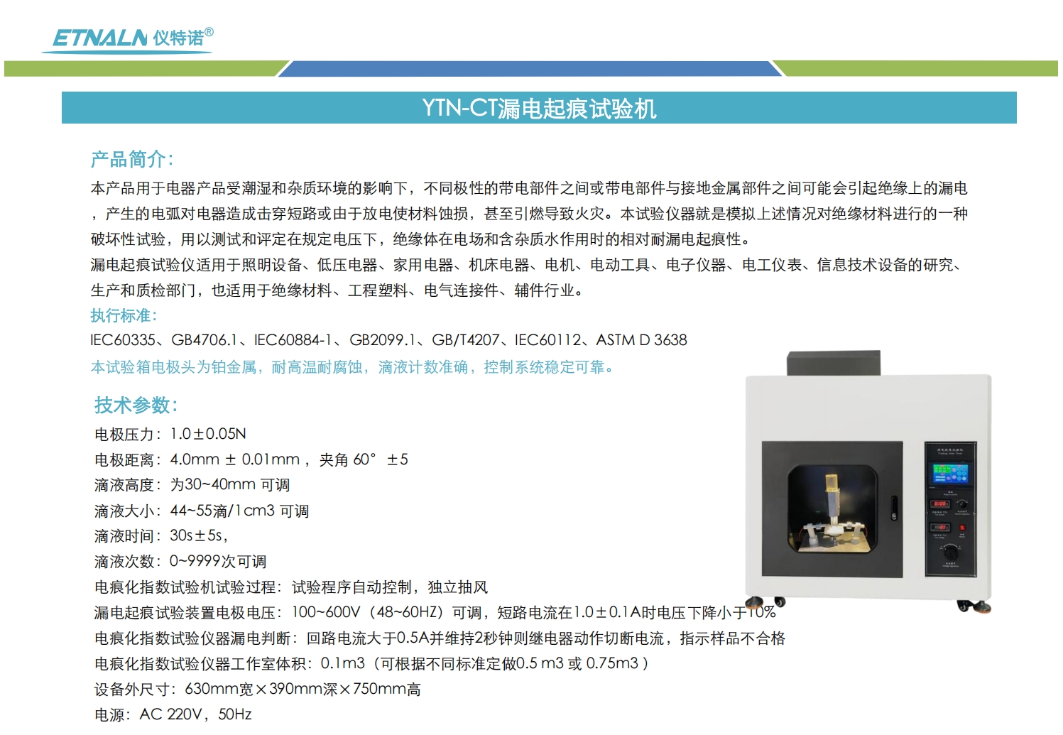 該設備用于評估材料在潮濕環境下的耐電弧性能,測定CTI和PTI指數。電極需選用鉑金材質,銅電極測試結果不被認可,需在報告中明確標注。