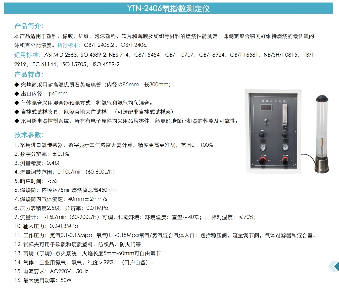 氧指數(OI值)是衡量材料阻燃性能的重要指標,氧指數測定儀通過測量材料燃燒所需的最低氧濃度,為阻燃材料研發提供數據支持。