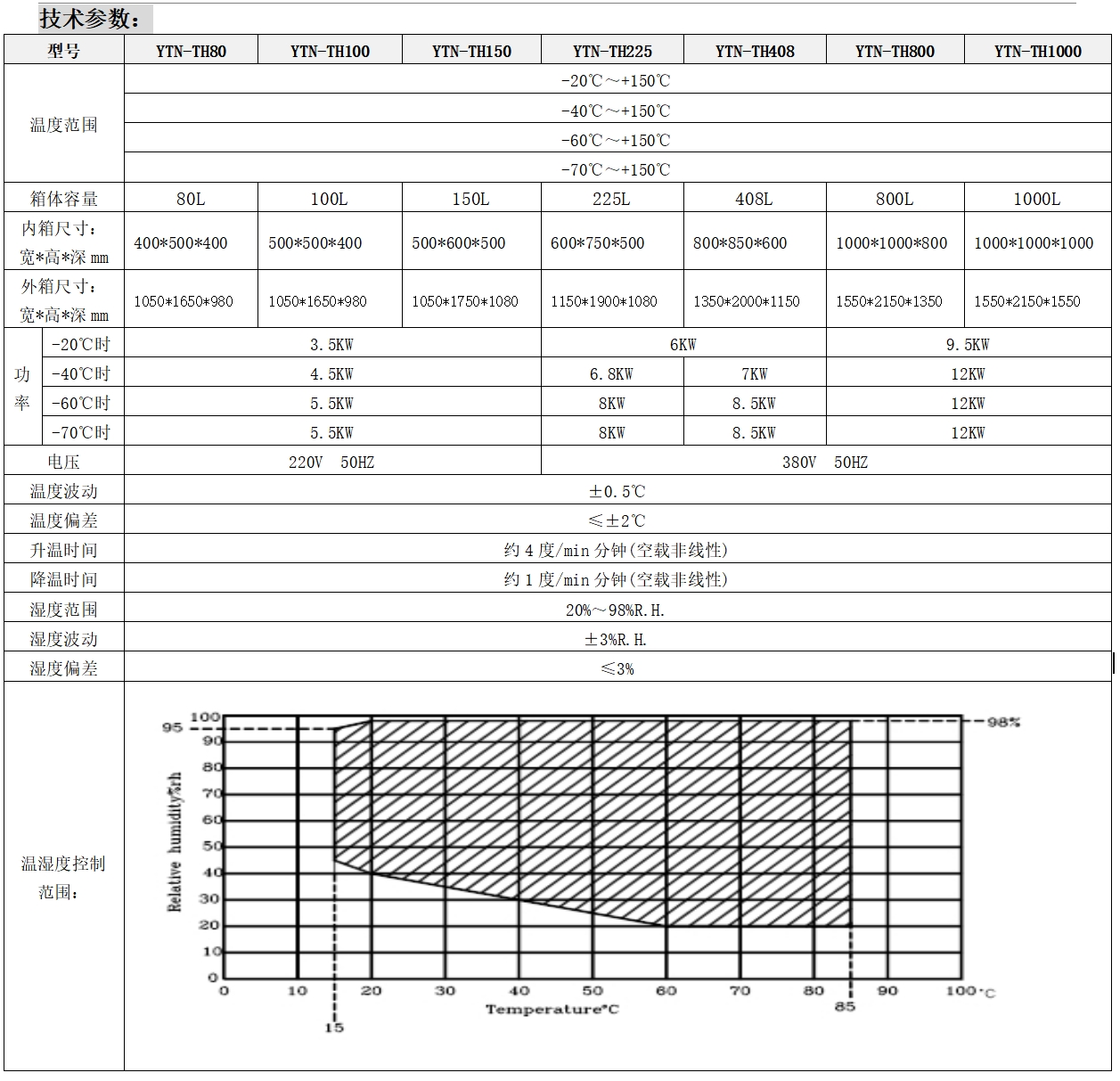 YTN-TH系列恒溫恒濕環境試驗箱采用先進的P.I.D溫控技術,系統結構設計先進合理,制造工藝規范,外觀美觀大方;該試驗箱主要電子元器件均采用世界品牌配置(含金量高)、技術原理先進可靠、產品性能可替代國外同類產品 ; 零部件的配套與組裝匹配性好,噪音與節能得到更好的控制,產品安全可靠,能確保用戶長時間、高頻率的使用要求;設備具有良好的操作性、穩定性、持久耐用性及安全環保性,不會對試驗造成污染等。